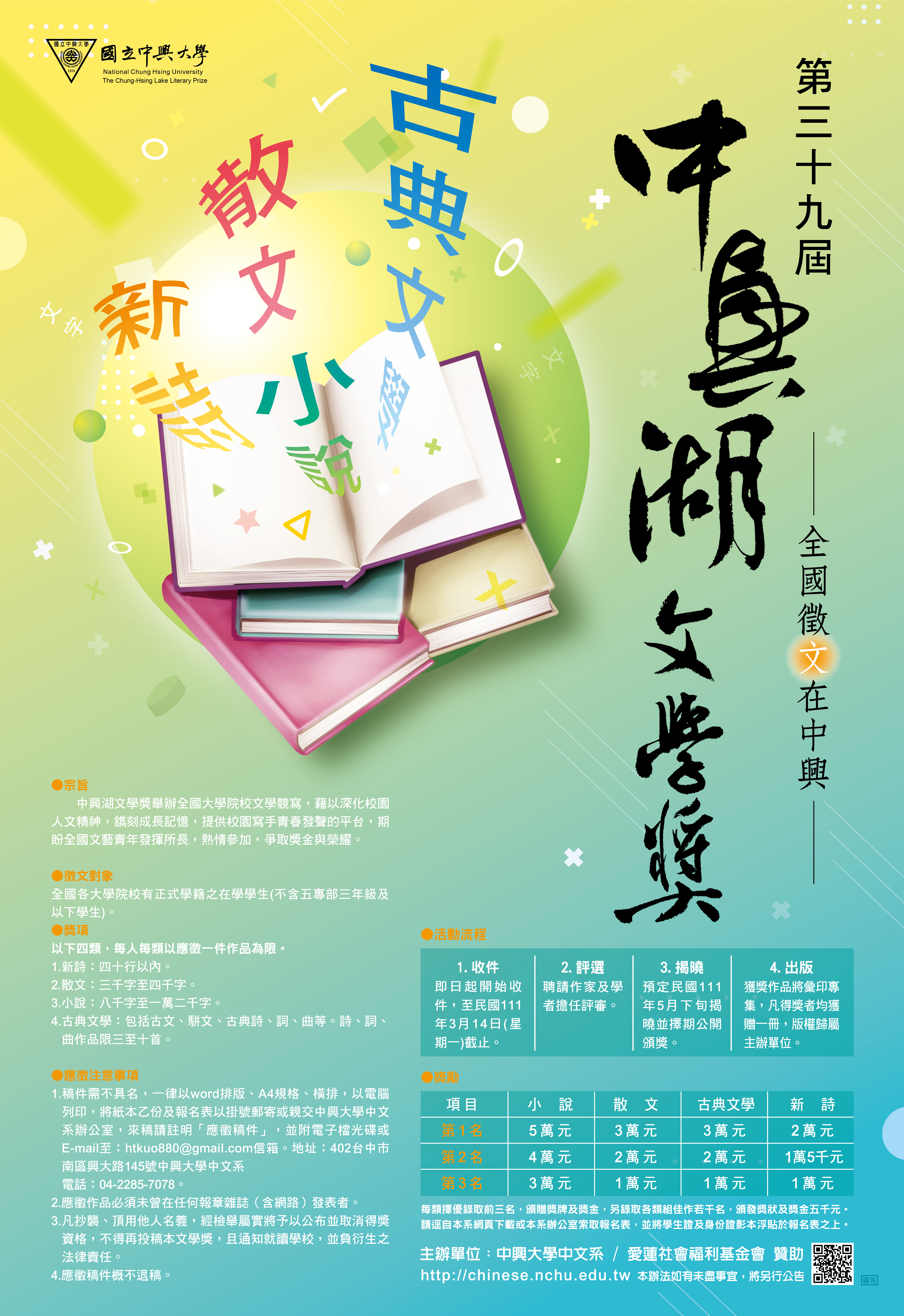 | 徵文辦法 | 第39屆中興湖文學獎全國徵文比賽 | 海報徵文辦法報名表 |