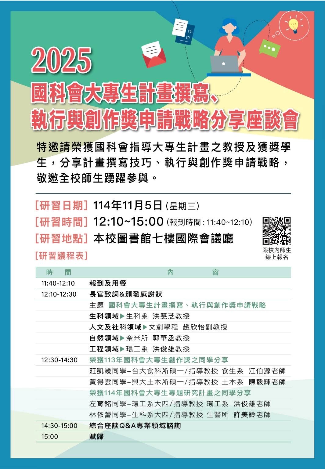 2025國科會大專生計畫撰寫、執行與創作獎申請戰略分享座談會