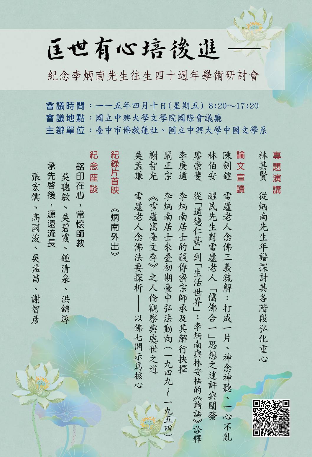 匡世有心培後進——紀念李炳南先生往生四十週年學術研討會